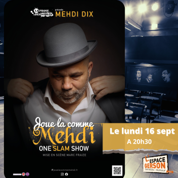 Entre amour des mots et mots d’amour, “Joue-la comme Mehdi” est un spectacle d’humour poétique de très haute volée. Au-delà du rire, c’est une véritable expérience humaine et émotionnelle que vous vivrez. Vous voyagerez dans un monde où les mots prennent vie et où l’on se rappelle la beauté du monde.